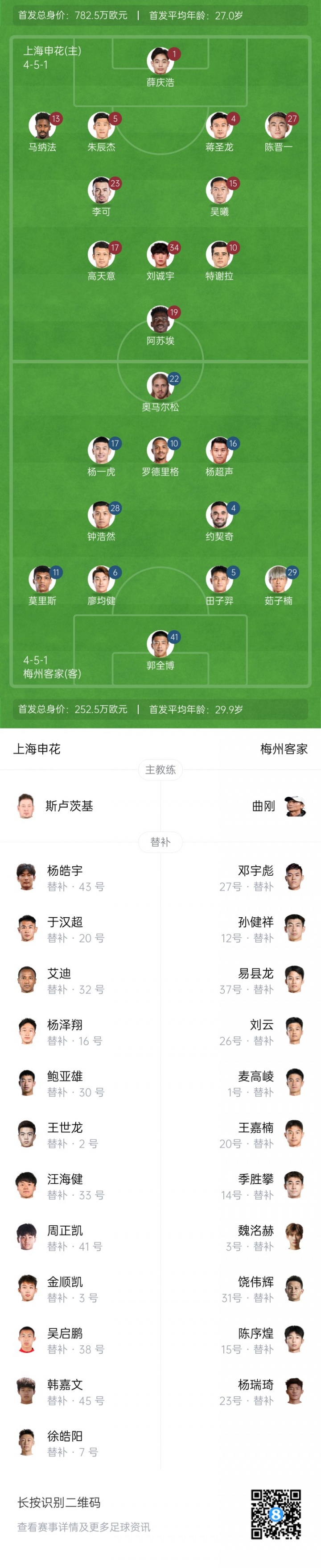申花vs梅州杆位:3外援PK4外援!刘诚宇、李可出战,罗德里格登场