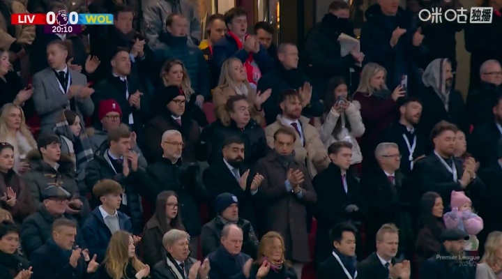 12月27日讯 利物浦vs狼队,赛事 进行至第20分钟,免费欧洲杯直播镜头给到看台,球迷们都在鼓掌。