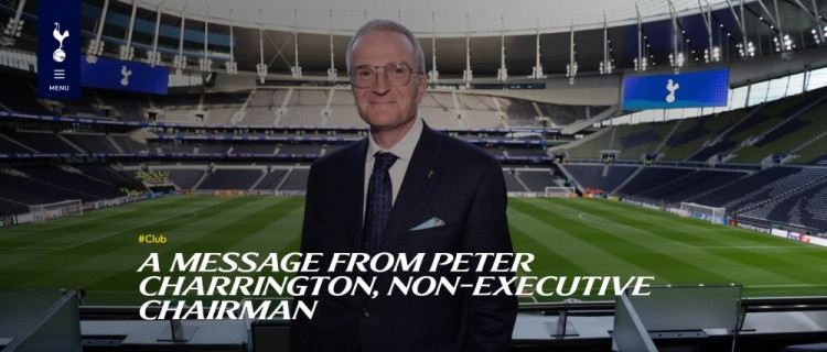 直播吧9月27日讯热刺新任非执行主席皮特-查林顿发表致热刺球迷的一封信。