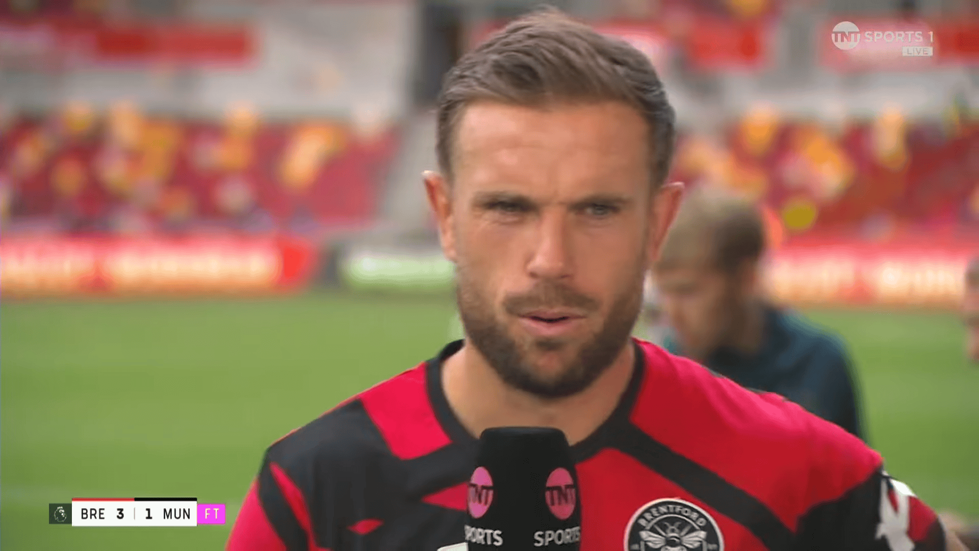 虎扑09月27日讯英超职业联赛 ,布伦特福德3-1击败曼联,赛后,布伦特福德中场球员乔丹-亨德森接受TNT体育采访。