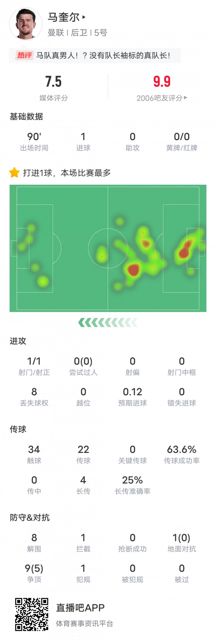 致胜球 利物浦!马奎尔全场数据:评分9.9!解围8次 争顶5次成功