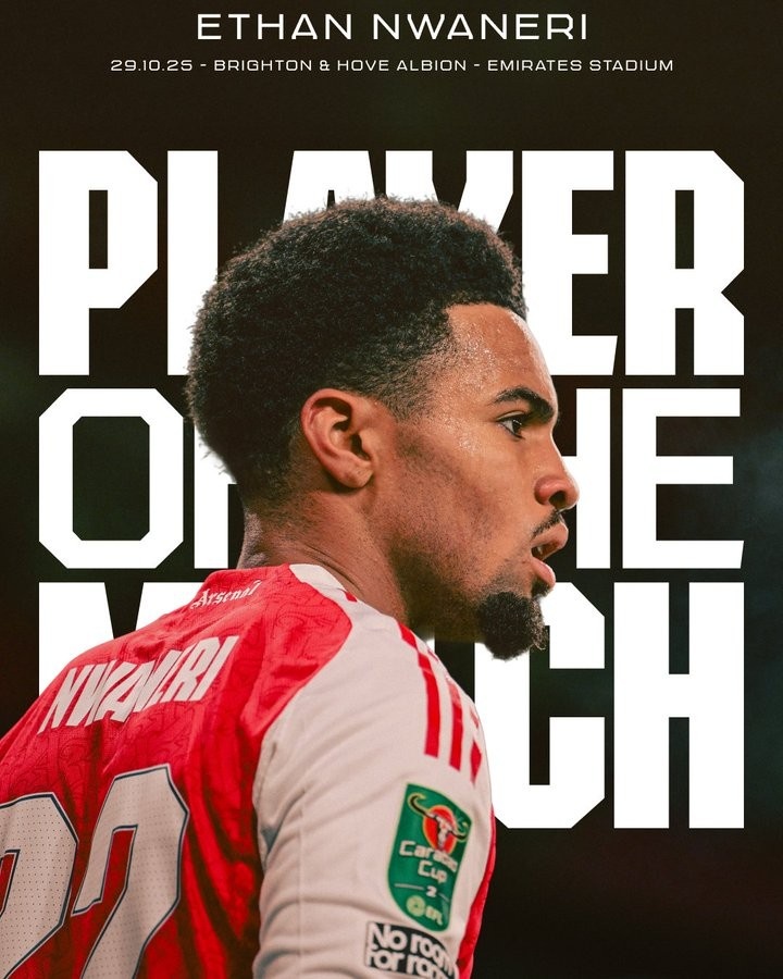打入一球!恩瓦内里被评为阿森纳2-0布莱顿队内全场最佳